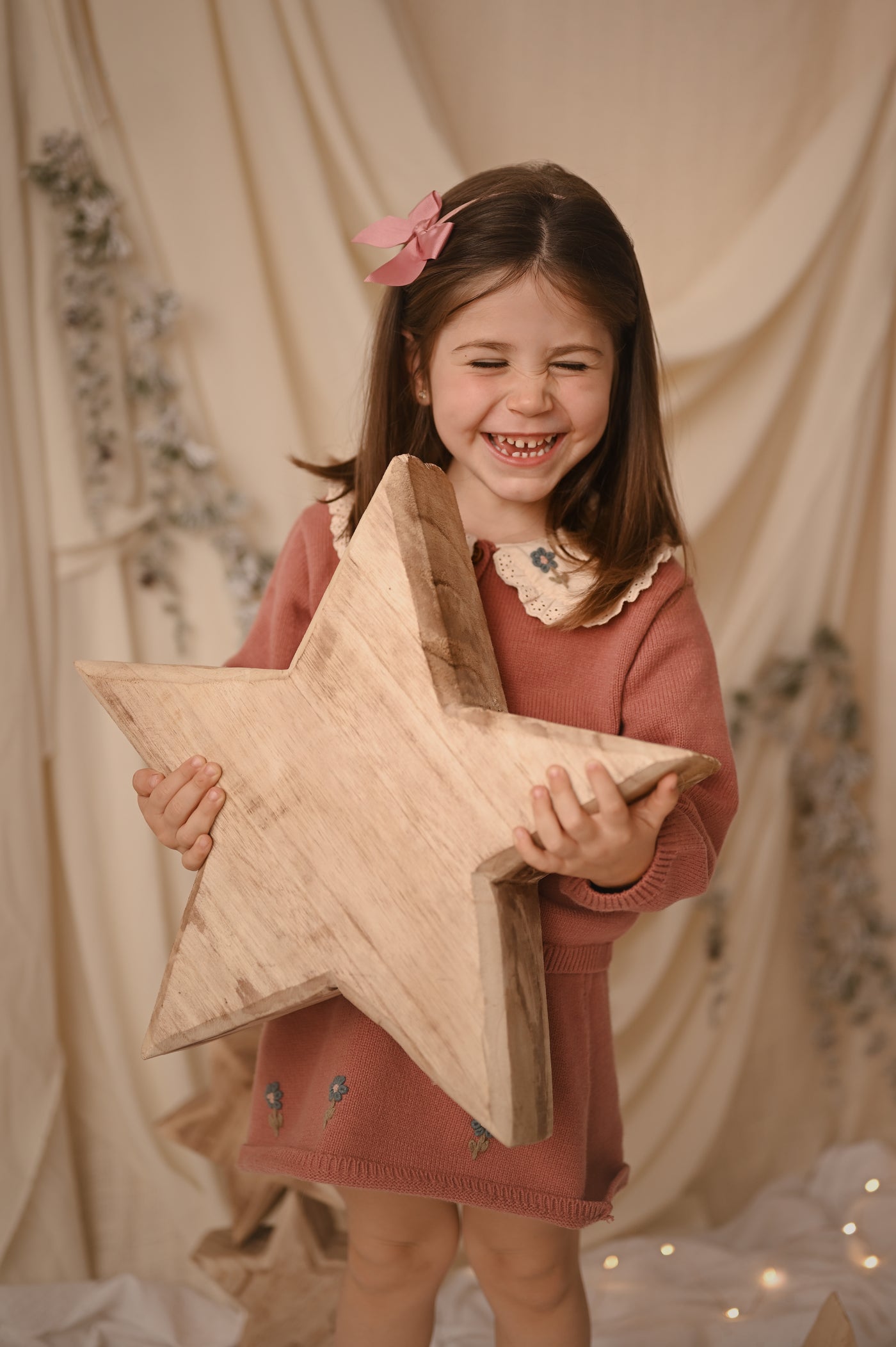A large decorative wooden star. Perfect for creating magical, celestial scenes in baby and newborn photoshoots. Ideal for Christmas decorations and dreamy themes.