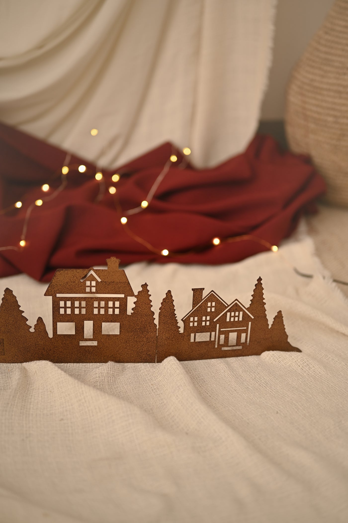Charming set of vintage-style folding decorative houses. Perfect for creating urban and village scenes in baby and newborn photo shoots. Ideal for Christmas decorations.